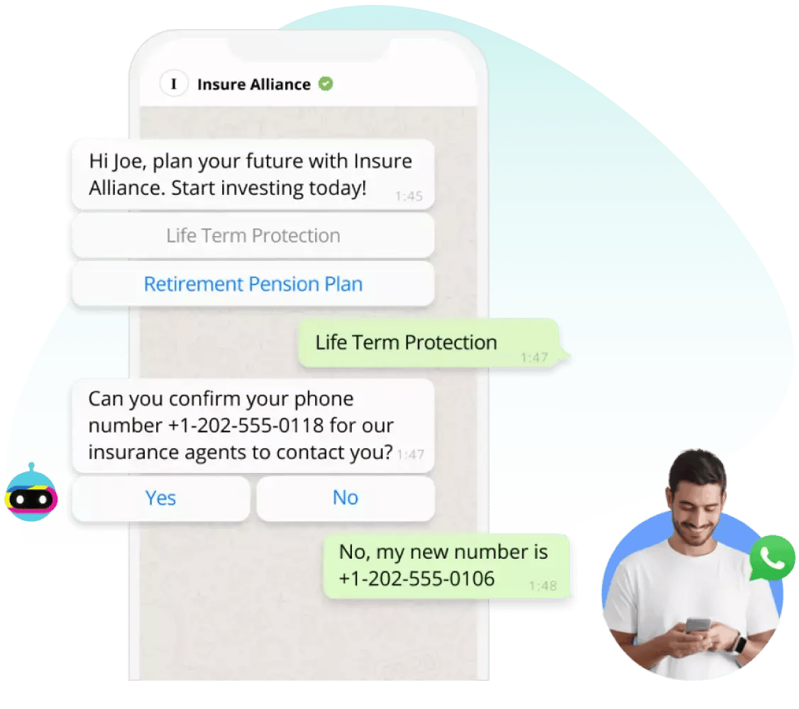 Use chatbot prompts to engage customers with insurance policy options and advise them on a case-by-case basis.