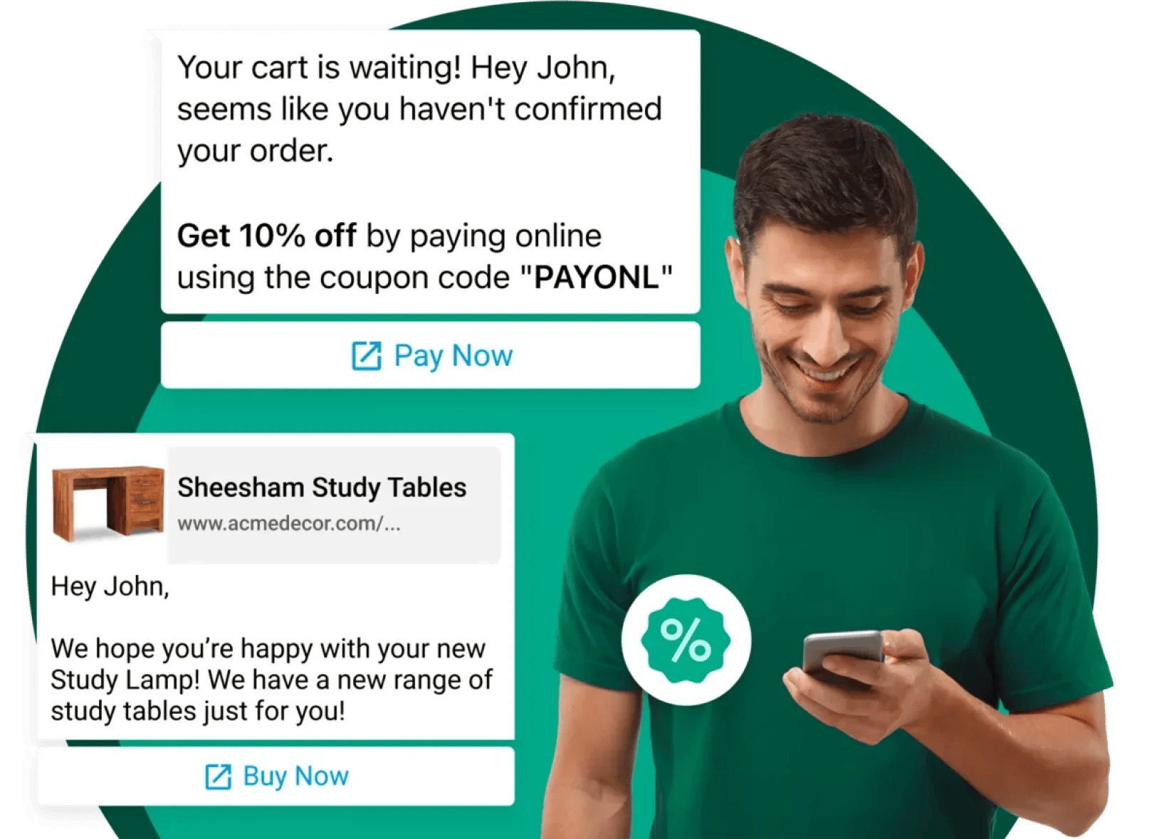 Send personalized offers and discounts, cart abandonment reminders to win your users' attention and increase engagement.